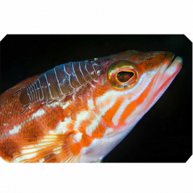 DTD καλαμαριέρα με το παράσιτο anilocra psysoides στο δέρμα της,το οποίο